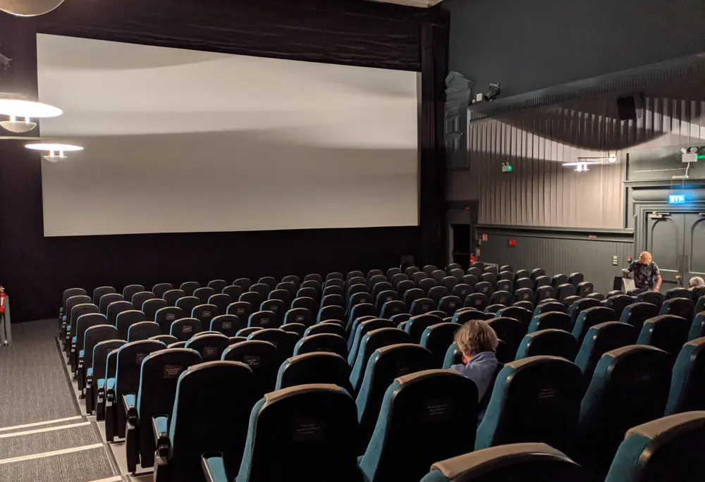 平日の昼間だったのでお客さんはまばら。週末はチケットが売り切れたそうだが、お客同士が距離をあけて座るようになっているので、収容数は激減した。