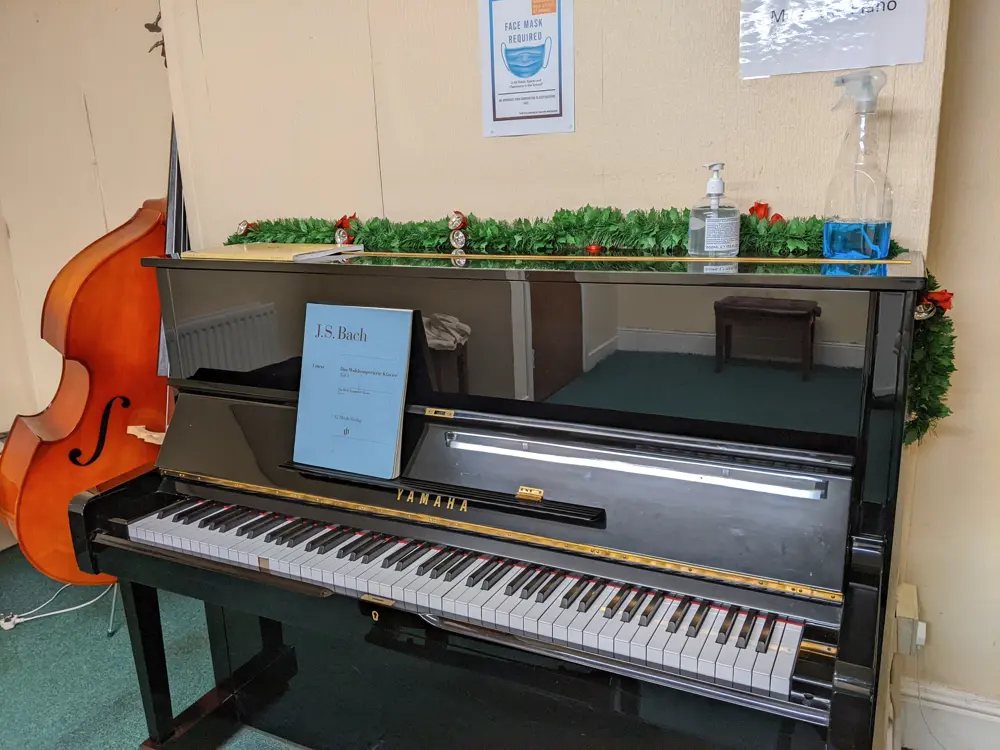 5年ほど通っている音楽学校 Waltons New School of Music、通称ウォールトンズは、建物は古いがスタッフは親身だし優秀な教師陣を揃えている。クリスマスツリーもデコレーションは音符やト音記号など音楽関係でほっこり。