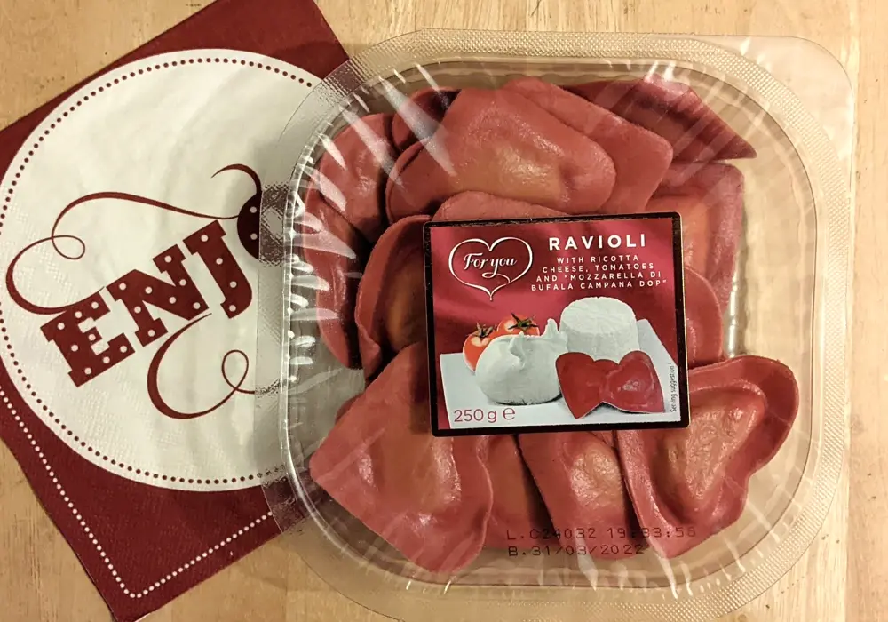 スーパーで見かけて思わず買ってしまったハート形のパスタ(トマトとリコッタチーズ入り)。バレンタインデーの夜は、家でこれを食べてから私はピアノのレッスンに出かけます。
