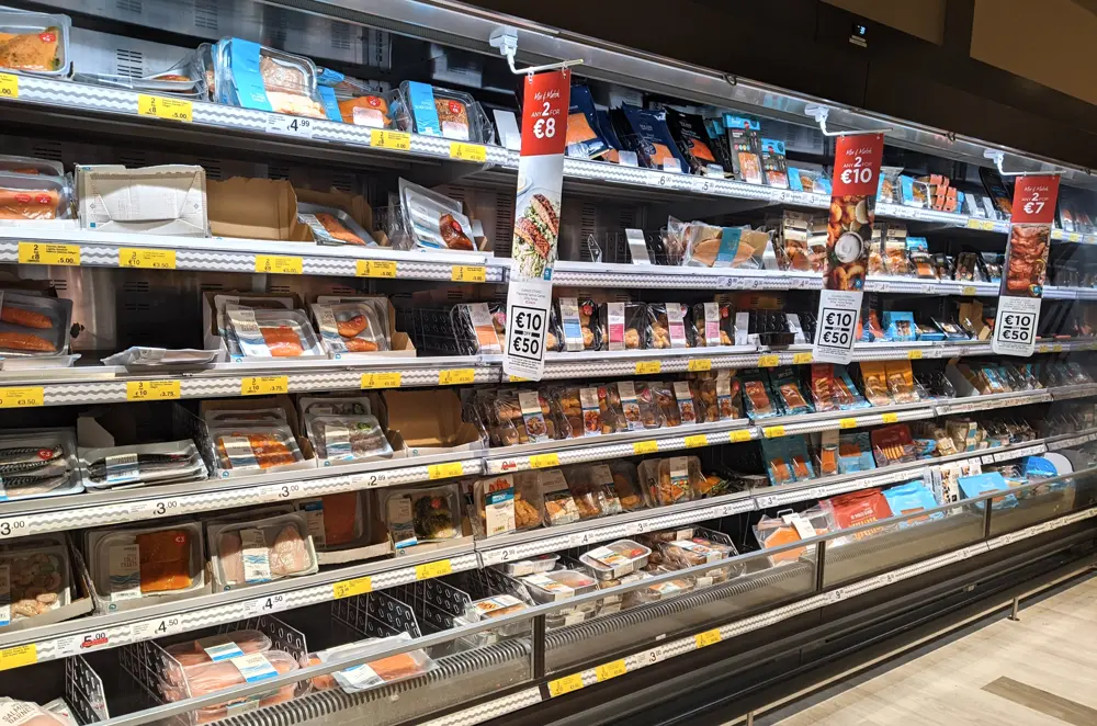 陳列棚に並ぶのはほとんど鮭、タラ、サバ mackerel、マス。燻製類(スモークサーモンなど)とフィッシュケーキ(マッシュポテトと魚のコロッケもどき)のような加工食品が陳列棚の 3分の2 を占める。