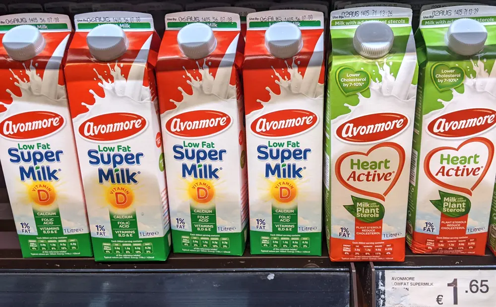 ビタミンD入りをうたった牛乳。1リットル約230円。今年に入って乳製品の値段が軒並み上がった。