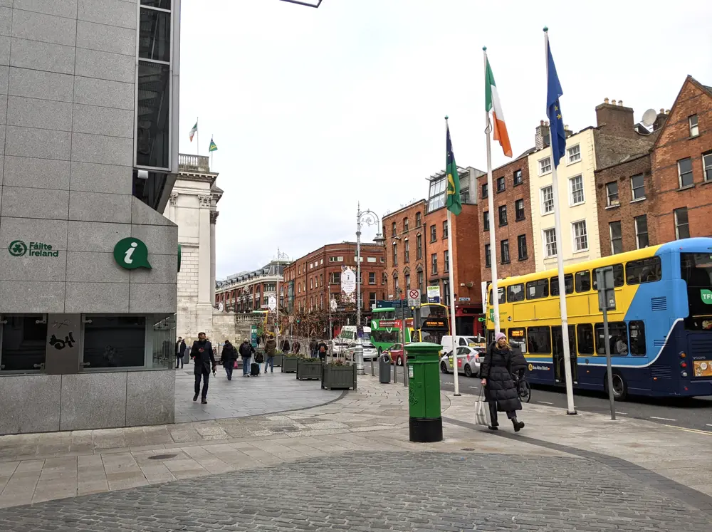 トリニティ―大学から徒歩ほんの数分、普段は大勢の観光客も行き交う Dame 通りがこんな状態に。