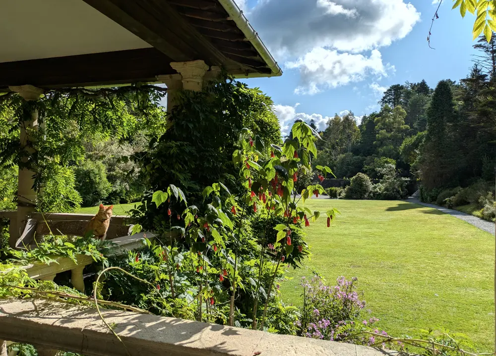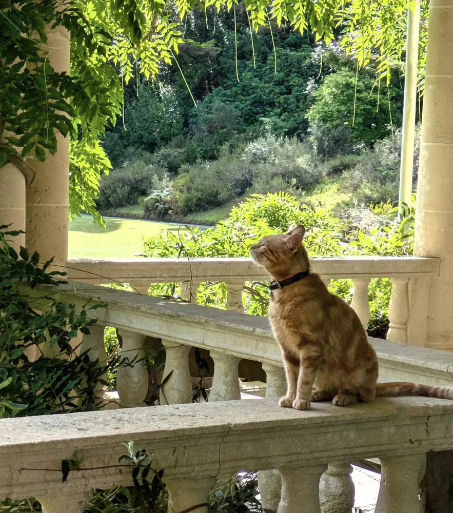 The Veranda という建物で私たちを出迎えてくれたのは、何か気品の漂うトラ猫。茶トラ猫はこちらではジンジャーキャット ginger cat と呼ばれる。猫に目のない夫が夢中になってなでていたら、ちょっと機嫌を損ねられた。