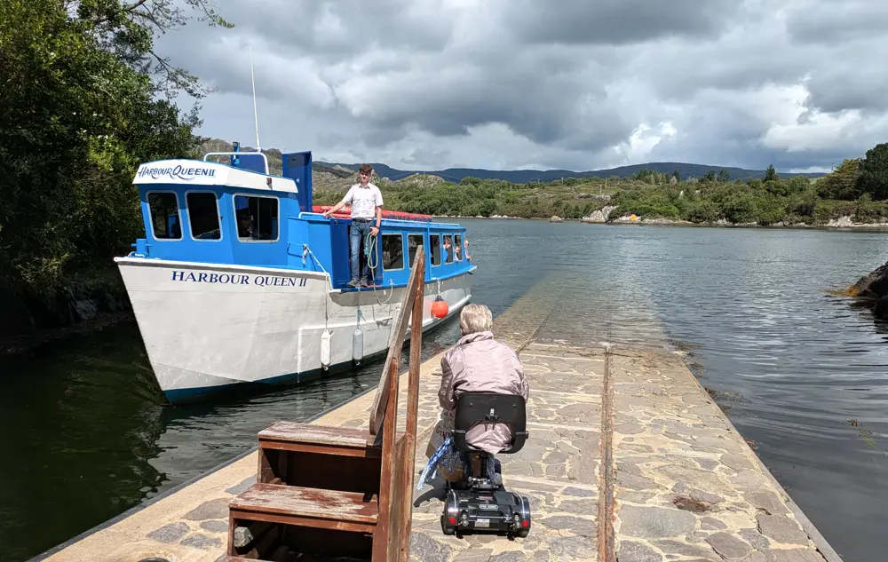 本島への帰りのフェリーがガーニッシュ島の船着き場に到着したところ。島は国の機関である OPW(Office of Public Work 公共事業局) によって管理されており、11月ごろから 3月上旬までは島は一般には公開されていない。