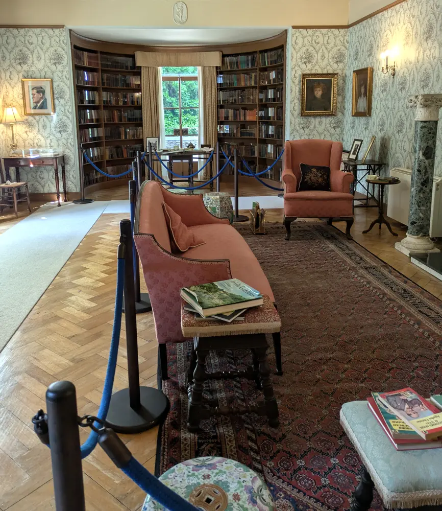 ブライス家がさまざまな著名人をもてなした居間。ローランドの友人でアイルランド初の大統領となったダグラス・ハイドや作家のバーナード・ショー、そしてミステリーの女王アガサ・クリスティーも客人だった。『亜熱帯植物園に死す』なんて本は書いていなかったっけ。