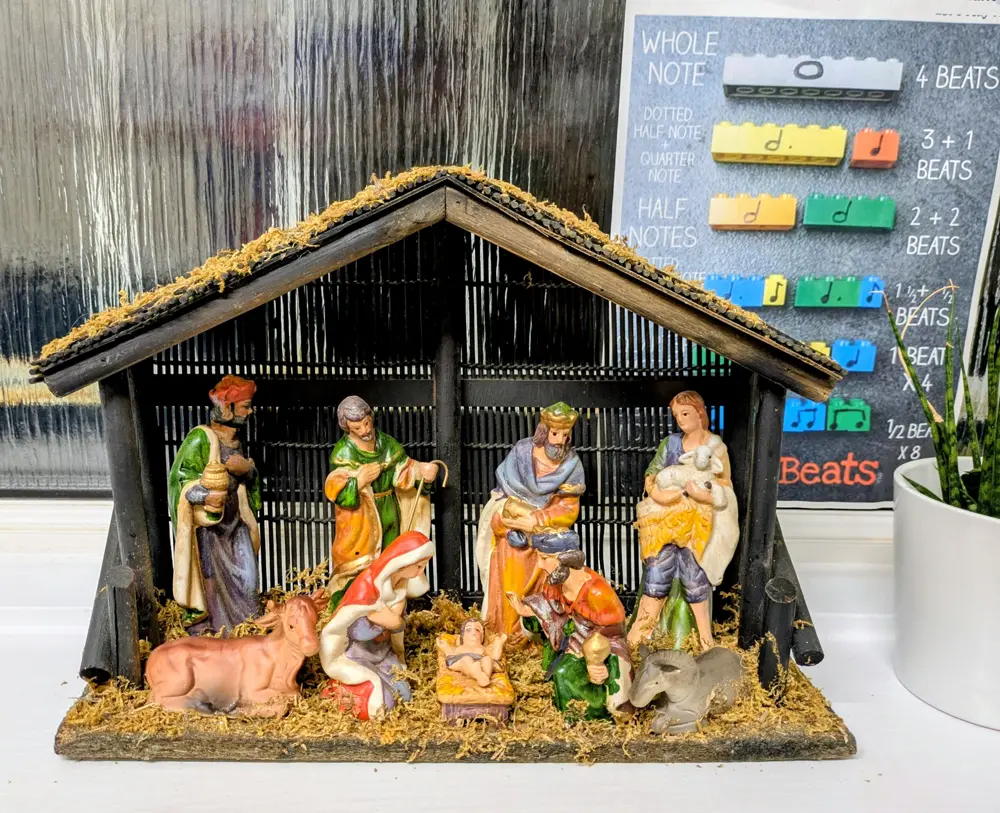 今ピアノを習っている音楽学校では、クリブ crib(キリスト降誕の情景を再現した馬小屋の模型)などのクリスマスの飾りつけがされている。