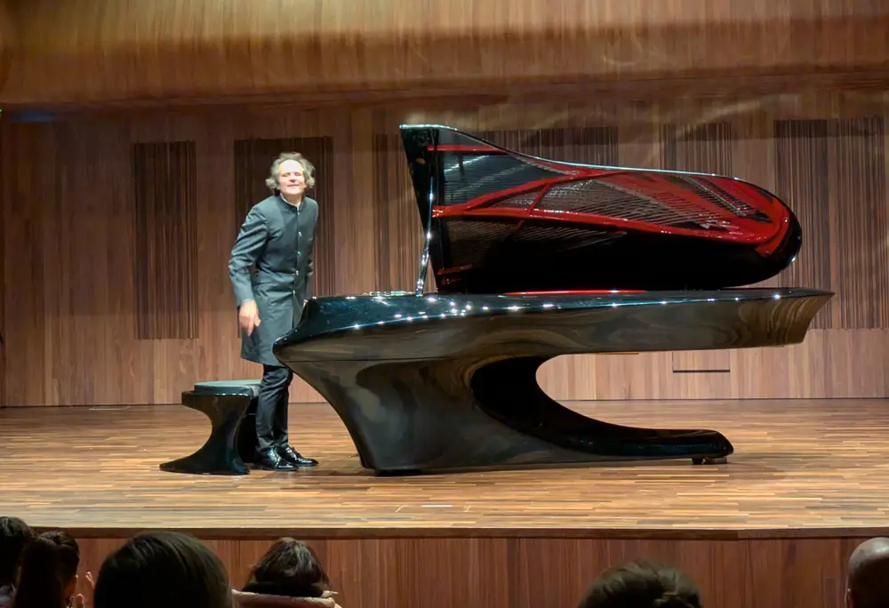 ゲルゲイ・ボガーニは、ピアノ演奏とともに、カーボン複合材を主に使用したピアノ設計でも知られているそうだ。RIAM(ロイヤルアイリッシュ音楽院)の中規模のホールのステージでは、彼のまるでスポーツカーのようなフォルムのピアノがひときわ大きな存在感を放っていた。