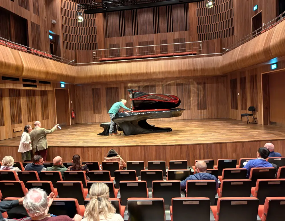 この特別なピアノはコンサート前に 4時間かけて調律されたそうだが、コンサートの休憩時間にも調律師が熱心に音を調整していた。正直にいうと、このピアノの音色には木の温かみやぬくもりのようなものが足りず、何だか超精巧な電子ピアノの音を聴いているという感じがぬぐえなかった。