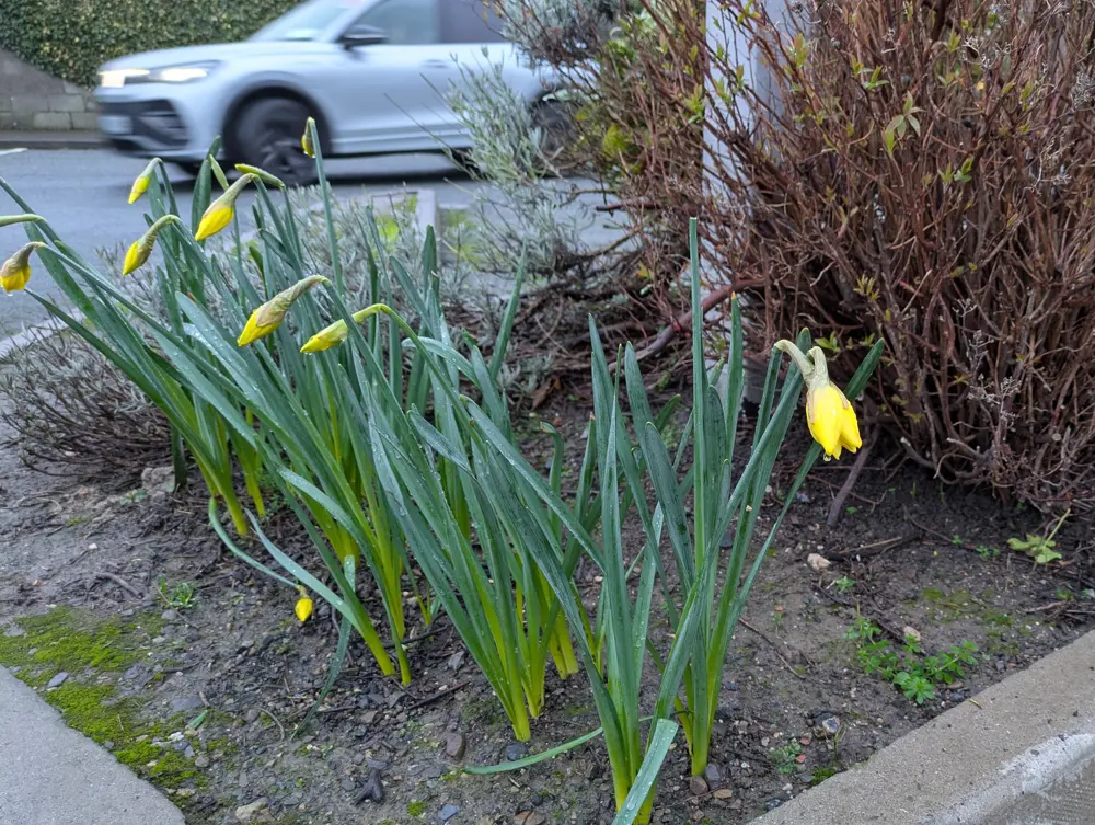 バス停までの通り道に咲く黄色い水仙は、この時期いつも目を和ませてくれる。